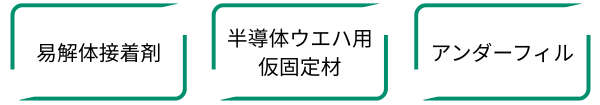 接着剤、粘着剤、インク、塗料、剥離剤、繊維複合材料、ポリロタキサン、フイルム、表面コーティング剤、吸水性樹脂、三次元造形用樹脂、フォトレジスト、インプリント成形物、アンダーフィル、リフローシート用材料、パターン形成材料、有機薄膜トランジスタ、細胞培養用培地、自己組織化膜、患部固定材、制御放出用の送達系(DDS・香料キャリア)、衣服、容器
